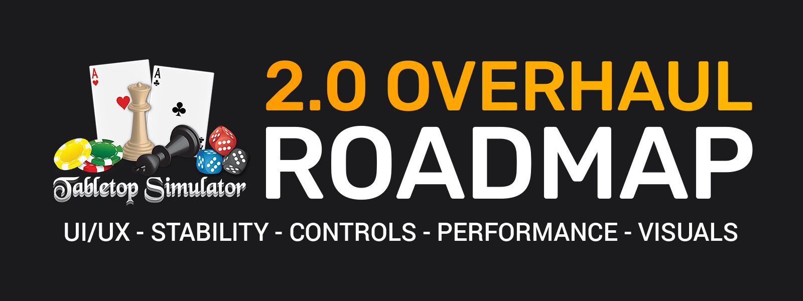 Tabletop Simulator 2.0 is not a sequel but the same Tabletop Simulator you already own, upgraded and reworked to feel modern, snappy, and more comfortable to use. The recent v14.0 engine update was the stepping stone to begin this process, and we would like to share this roadmap with you early to incorporate your feedback and suggestions.